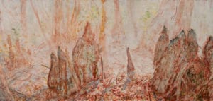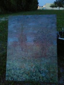 Swoyer observed that Florida artists paint in a high key palette to in response to Florida light. However, there are other means to achieve tone and color. One strategy is to paint within swamps and woodlands, which filter the intense light of midday. This painting, “Swamp Light” (2017) focuses on painting the shadows, with thin layers of primary colors, not mixed with white: