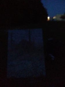 Below are panels for a painting “Nightfall at the Bend”, in progress: