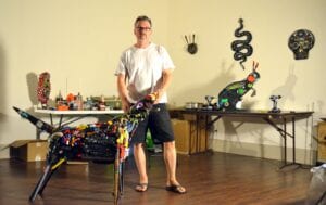 I had been looking half-heartedly for studio space, sort of waiting for the right opportunity to fall in my lap. It never did. I had looked at many spaces and found nothing with the right combination of karma, privacy, space, location and price. Until I happened upon a 2,100 sq/ft. space in Pinellas Park about 4 miles from home. It was twice the size of my California studio. I was getting desperate and I made up my mind to lease this place and make a go of it. The landlord agreed to do the extensive electrical upgrades for my welder, plasma cutter and compressor, as well as add new banks of fluorescent lights to evenly illuminate the space. I did a thorough cleaning and painted the walls. It felt good to be sprucing up the space to accommodate my new studio.