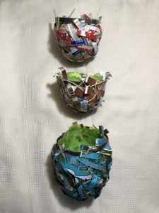 So my work is cut out for me for the next few weeks. Connect back to Gabriel to discuss my latest plan/layout (time to draw/sketch), keep sorting my paper (cardstock) colors, start gluing together 7 ft. long strips of blue/green strips (paper already shredded), look at Mark Rothko’s works, rework the Comfort Baskets layout/configuration, copy 11 music song sheets at Staples on the backs of (recycled) posters and make the 11 baskets.