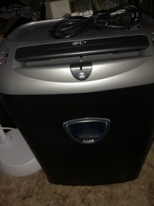 This super-duper shredder arrived at my door this week. Thank you, Creative Pinellas! Current events: I got mail! Three days ago, a big box showed up on my doorstep. A Fellowes Powershred 70S, a medium duty straight cut shredder. I’ve been wanting one of these guys for years! Waiting for the lubricant sheets to arrive. Then it will be time to start heavy duty shredding.