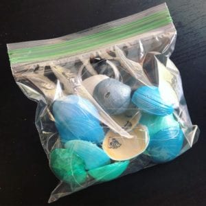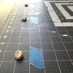 I then place the first six shells into poster putty on my table with all the bottoms of the shells pointing to the right.