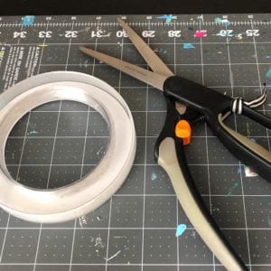 I place the shells, in ombre color order, on my work table. Next, I measure and cut a piece of fishing line.