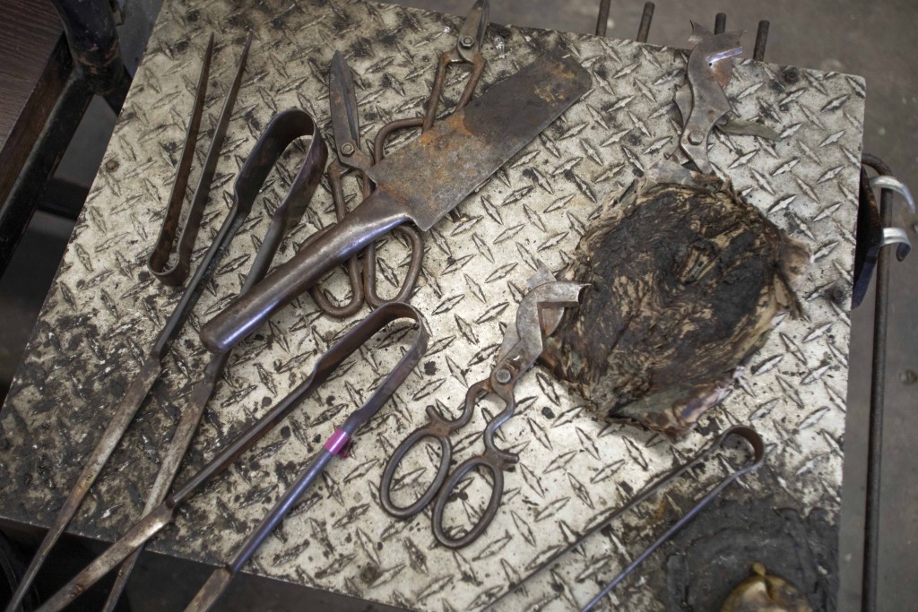 Being in the studio feels like being in an Old-West movie. There are bulky tools and dangerous machinery that look like things blacksmiths used 200 years ago. Its high ceilings are vaulted overhead, which makes the warehouse floor open and expansive for mobility between stations.