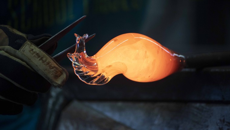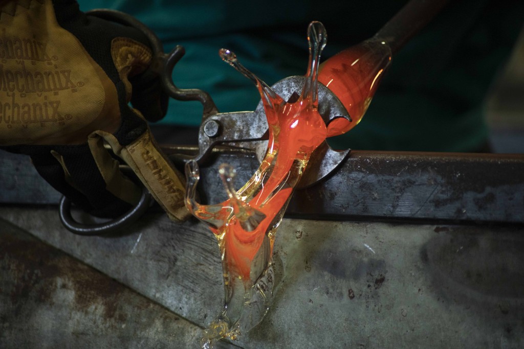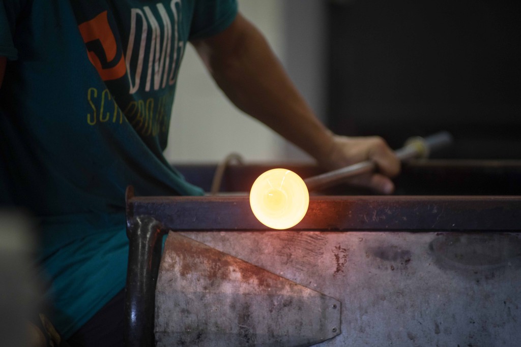 The delicate precision of today’s technologies seem to have no place in the glass studio – there are no screens, no computers, no distractions anywhere in sight. All that’s in there is what’s needed for melting and shaping glass.
