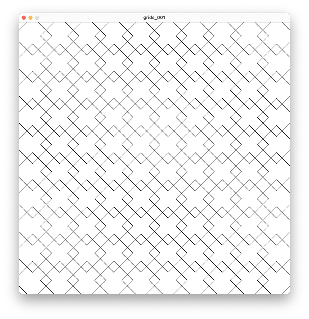 Let’s look at a video example of some code in action, where the angles inside each cell of a grid are being manipulated to steer the curves of a drawing. In this example, I’ve also exposed other variables as parameters to express the fluidity of this method of using the grid to draw algorithmically.