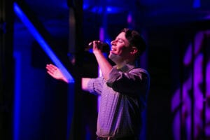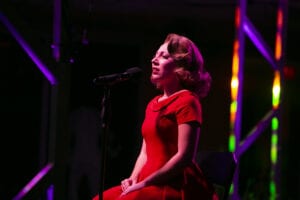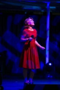 FreeFall has some of the strongest performers, especially when you add the Florida elements to their performance. Julia Rifino was wearing a wig for this show – imagine having that as part of your costume on a warm Florida Spring night! Julia helped share some of her tips for combating the weather with me, saying, “The unpredictable Florida weather and surprise bug encounters absolutely force you to be adaptable as an actor! Last night, Emanuel had a run-in with a June bug during his gorgeous ballad “Lonely Town” and he played it off like a pro!”