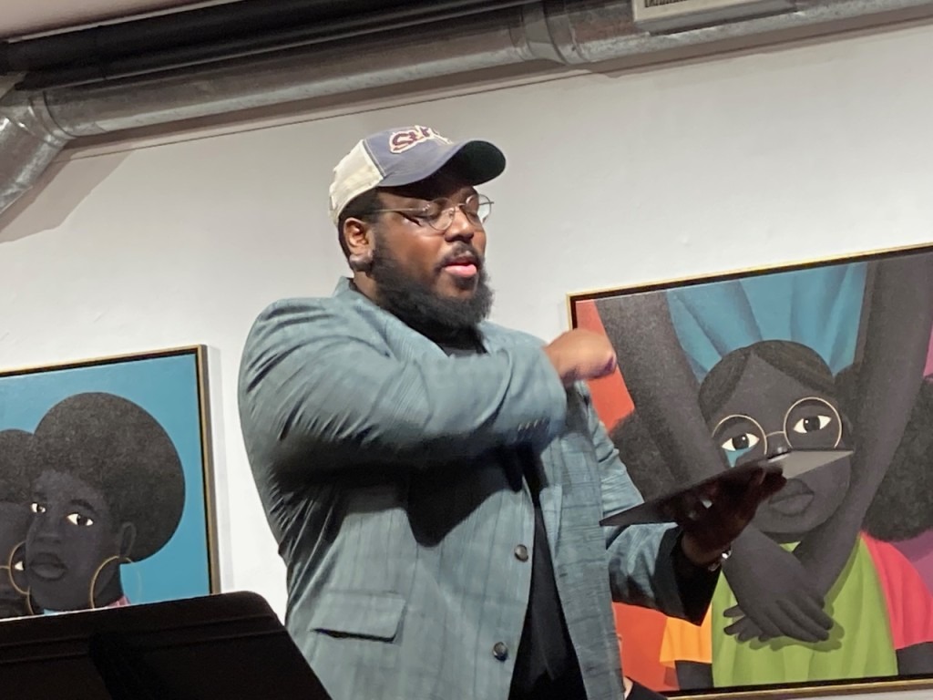 “What is the Dead Poets Society?” asks poet Denzel Johnson-Green, one of the co-hosts at the open mic fundraiser for FOJK at Studio@620