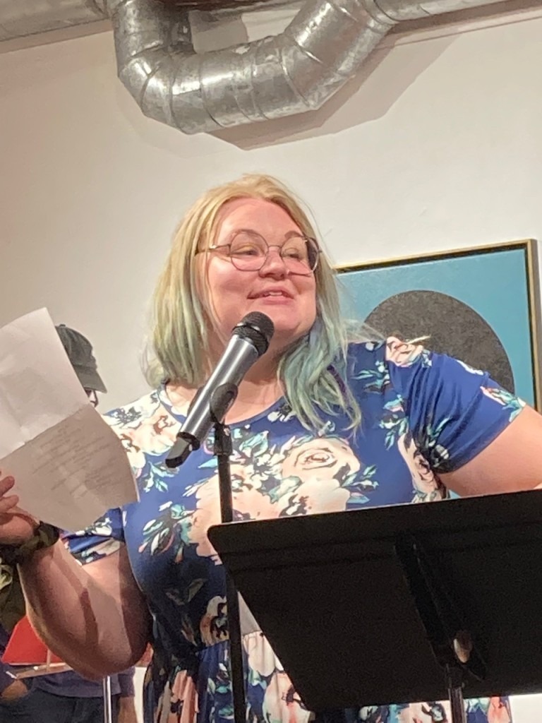 • The evening echoed the original “Say What?” idea of mixing the arts, bringing six local storytellers to a hot mic, accompanied by original music.