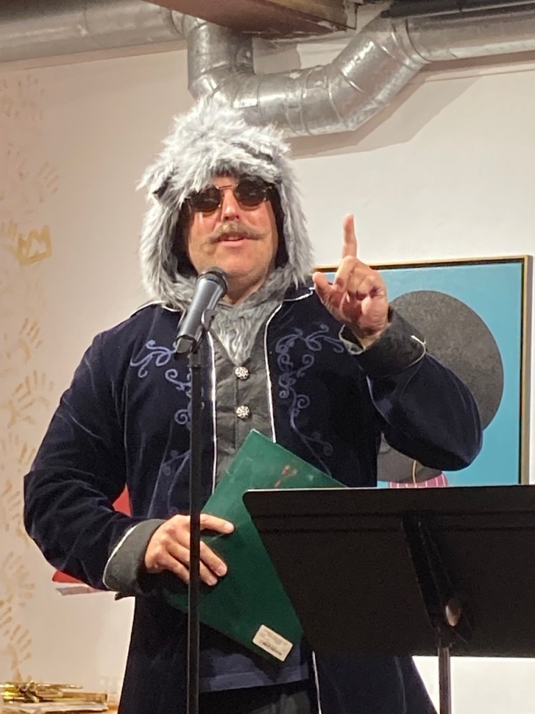 And, finally, the main event – the poetry. In the spirit of the Halloween season, members of the audience were invited to throw their names into a pumpkin so that Denzel Johnson-Green, a Friends of Jack Kerouac board member and one of the co-hosts for the evening, could pull out the slips of paper at random and invite people to step up to the hot mic to read a poem.