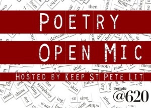 Poetry readers at Studio@620 backed by The Johnny White Experience’s jazzy sounds and Nick Davis’s eye-popping paintings – Miesha Brundridge is a board member of the Friends of Jack Kerouac who curates the annual Youth Speaks Poetry Open Mic at Studio@620 offered by Keep St Pete Lit