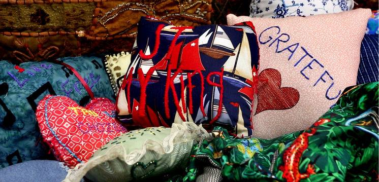 To put women prisoners at ease, Barbara Rhode has hung quilts in the healing space at the Pinellas County Jail where the participants of the Red Tent Women’s Initiative meet. These quilts hang just outside Rhode’s Central Avenue office in St. Petersburg – photo by Margo Hammond