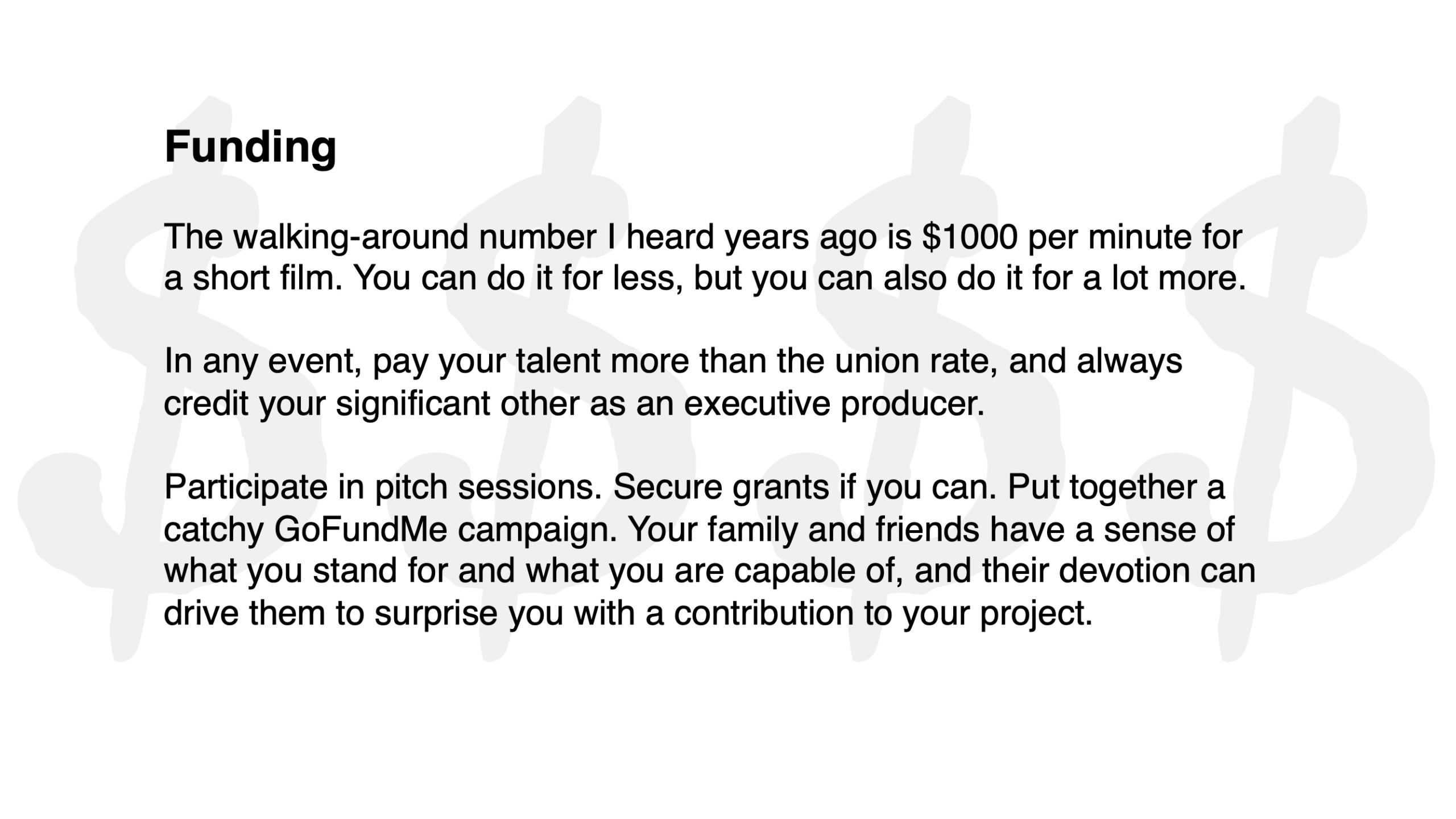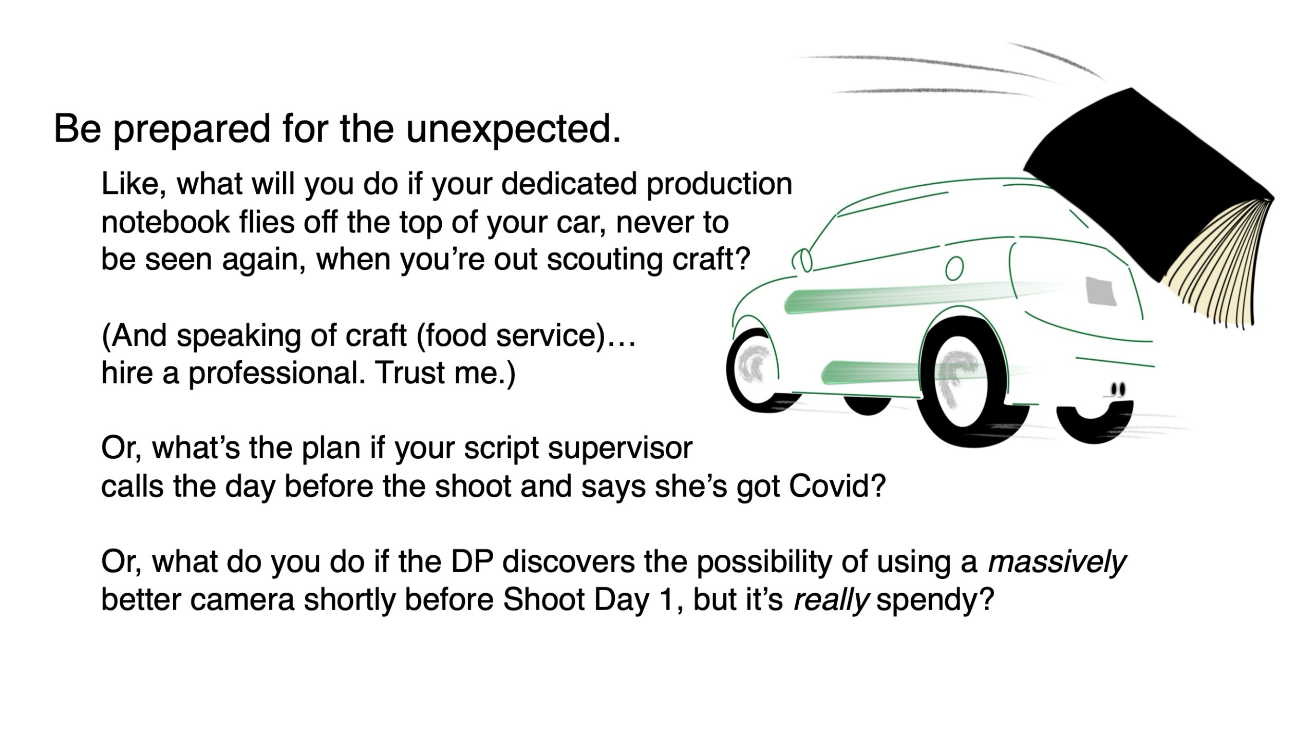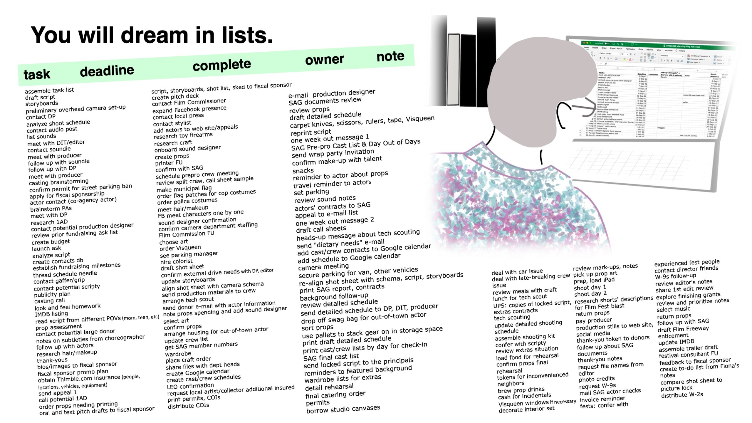 But anyone who’s made a film or video is thinking about all of that, and St. Pete filmmaker Susana Darwin kindly shares the pre-production steps she takes to develop an idea into a workable plan – the complex array of things that have to happen before you start filming.