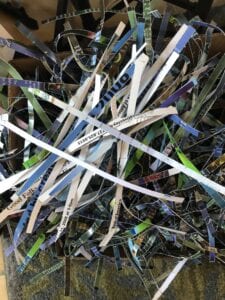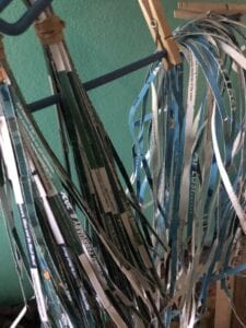 Love my new shredder. The strips are a tad shorter in width to strips I’ve cut with my basic and second-hand shredder. This machine is a monster,  efficient and a pleasure to use. I’m calling it Frank (as in Frankenstein). Frank has been busy chewing through boxes of blue/green stuff.  A little bit goes a long way. There’s still more…