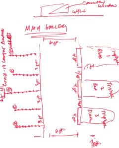 I walked Gabriel through the drawing. I feel confident this walkway layout works. We talked…enough that I’m feeling I’m on the right path. I think Gabriel is almost as excited about my contribution to the Emerging Artists Show as me!