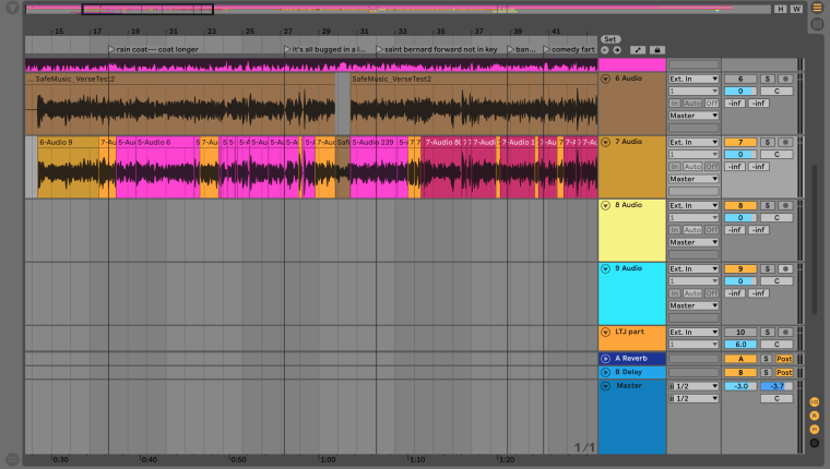 You can imagine, now being well into adulthood, that youthful yearning for exactness has only amplified itself to the nth degree. I think I can confidently say, especially in regard to my, now four, published hip-hop albums, I have royally pissed off—almost to the point of ruining friendships—the major players/collaborators in each of those individual projects. I’m a pretty big stickler when it comes to the writing process, but perhaps even more so in the vein of recording, mixing, and mastering. I learned a long time ago that I, personally, have to be the one to record my own vocals. While I’ve gotten better at it over the years, there are times that I spend hours upon hours attempting to “Frankenstein” a vocal take together that is exactly how my brain envisioned the delivery. For example, see the featured image on this blog post to get an idea of what the vocal track to “Safe Music” looks like. Every time you see a vertical line between the wave forms, that’s technically a punch-in or a separate take. Depending on the song, verse, or honestly how obsessive I’m feeling on any particular recording day, I might be interjecting different takes at the SYLLABLE level. Yes, I AM a crazy person. To try to do this in-studio with another collaborator or engineer is a staggering waste of time, energy, and potentially/very much so… money. The only way for me to achieve vocal takes, that satisfy me for their permanent release into the world, is for me to take my sweet leisurely time with them (on my own).