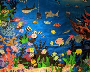 Students learn the steps in creating large drawings and paintings. They collaborate as a team, using the theme of the week to work up sketches and scaled drawings. Then they transfer and enlarge their artwork onto huge sections of paper for a finished mural that will be displayed at DFAC, Dunedin Public Library and other buildings as space allows.