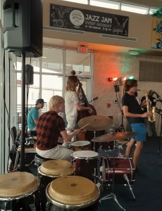 The Al Downing Jazz Association gives scholarships to high school music students. And every Monday night Dwayne calls up music students to take part in the innovative sounds. One student on summer break from the University of Indiana was thrilled to play his tenor saxophone. He stepped to the mic and never missed a beat and was always right on cue.
