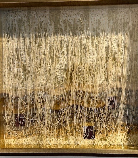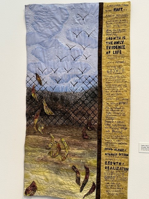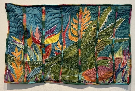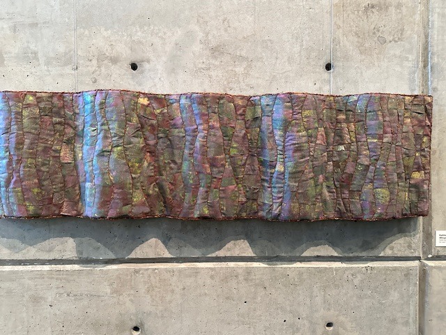 This fiber exhibit came to be as a result of a workshop collaboration between LRMA’s Curator Sara Felice and fiber artist Leeann Kroetsch, who stepped in as co-president of the Tampa Bay Surface Design Guild with Aida Sheets, after Marlene’s passing. As Sara says in her Curator’s Note, her interaction with fiber arts, traditionally viewed as “lesser, low art, or ‘women’s work,’ was limited.