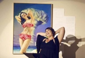 That year Creative Loafing’s Best of the Bay touted The People’s Choice Winner for Best Collaboration at the 2nd Annual Fantastic Ekphrastic. It went to Lance Rodgers, Sheila Cowley and Becca McCoy. Cowley wrote a one-act play inspired by Rodgers’ painting Bikini Atoll Bombshell which was performed by McCoy. [Disclaimer: Sheila Cowley is Managing Editor of the Arts Coast Journal.] Second Place went to Sall & Son by Cora Marshall, described by John Pendygraft and performed by Sandra Gadsden. Receive by artist Suzy Schultz, writer Frank Wells and actor Bob Devin Jones took third place. As he did for the first Fantastic Ekphrastic Devin Jones directed the evening’s performances.