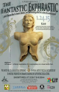 Most people from the Tampa Bay area first heard the word ekphrastic when Keep St. Pete Lit held its first Fantastic Ekphrastic fundraiser on January 24, 2015 at Soft Water Studios in St. Petersburg’s Warehouse District. The group, led by poet Maureen McDole, has offered a half a dozen ekphrastic events since.