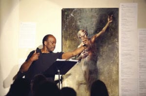 Also in 2017 Keep St. Pete Lit held what Creative Loafing called a “Holocaust ekphrastic,” asking writers and performers to react to The Holocaust and the Book of Fire, an exhibit by Murray Zimiles, the stepson of a Holocaust survivor, on display at the Florida Holocaust Museum in downtown St. Petersburg. “His work asks: Where was God during the Holocaust? Where was civilization?” wrote Cathy Salustri in Creative Loafing.