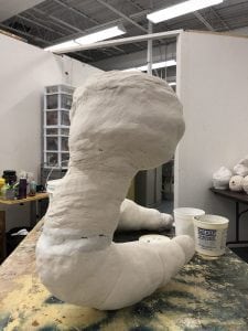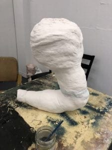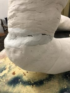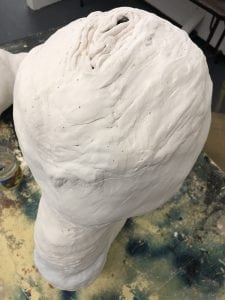 Just a few scrapes and cuts that have to be touched up, and then it’ll be ready for painting and adding hair! The overall shape is a little clunky, but for my first run at a “reaching up” sculpture like this, I’m pretty happy. The next few will look more natural, more seamless, and have more twists and appendages probably. Can’t wait to show it off!