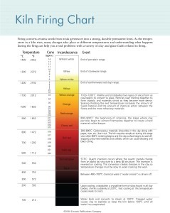 The next stage is when full carbonaceous matters and sulfurs begin to burn away as a gas. During the temperatures of 1292° – 1700° F, the kiln has to rise extremely slow to allow those matters to burn away. Some firing schedules that rise quickly through these temperatures can cause pinholes or craters in the finished pieces.