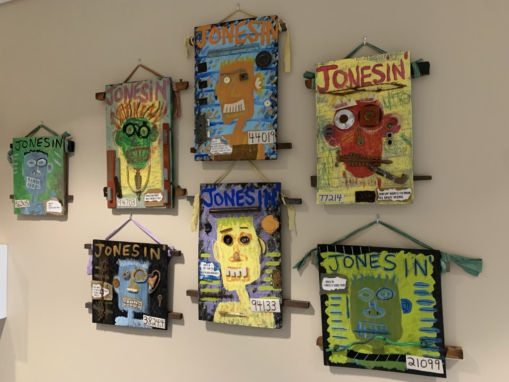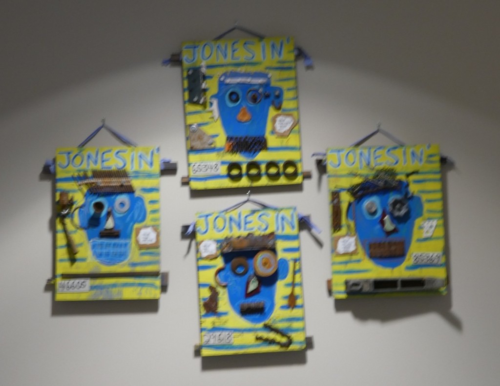 Derkevics’ voice projected over the background noise, with a poem about a man down on his luck. The poem was so descriptive of the man, the time, and his situation, that I can still see this fictional character sitting on the bus that Derkevics had created. Twelve years later, I attended the opening of Derkevics’ first visual art show, Jonesin’ at the St. Pete College Epicenter in Clearwater on September 15.