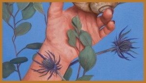 Surrounding the hand, eucalyptus leaves serve as a potent symbol of cleansing and fresh beginnings. The eucalyptus is renowned for its therapeutic and rejuvenating properties, representing the potential for renewal and growth. As viewers gaze upon the painting, they are reminded of the capacity to shed the burdens of the past and embrace a revitalized life, infused with the essence of the eucalyptus leaves.