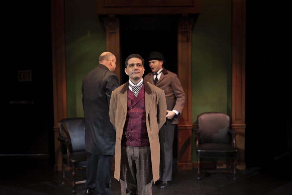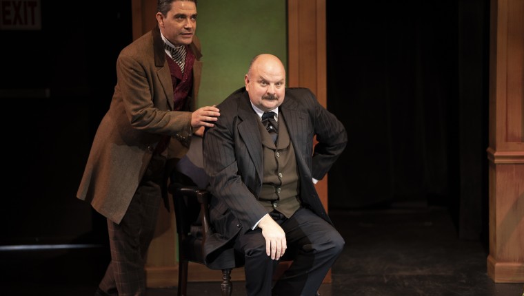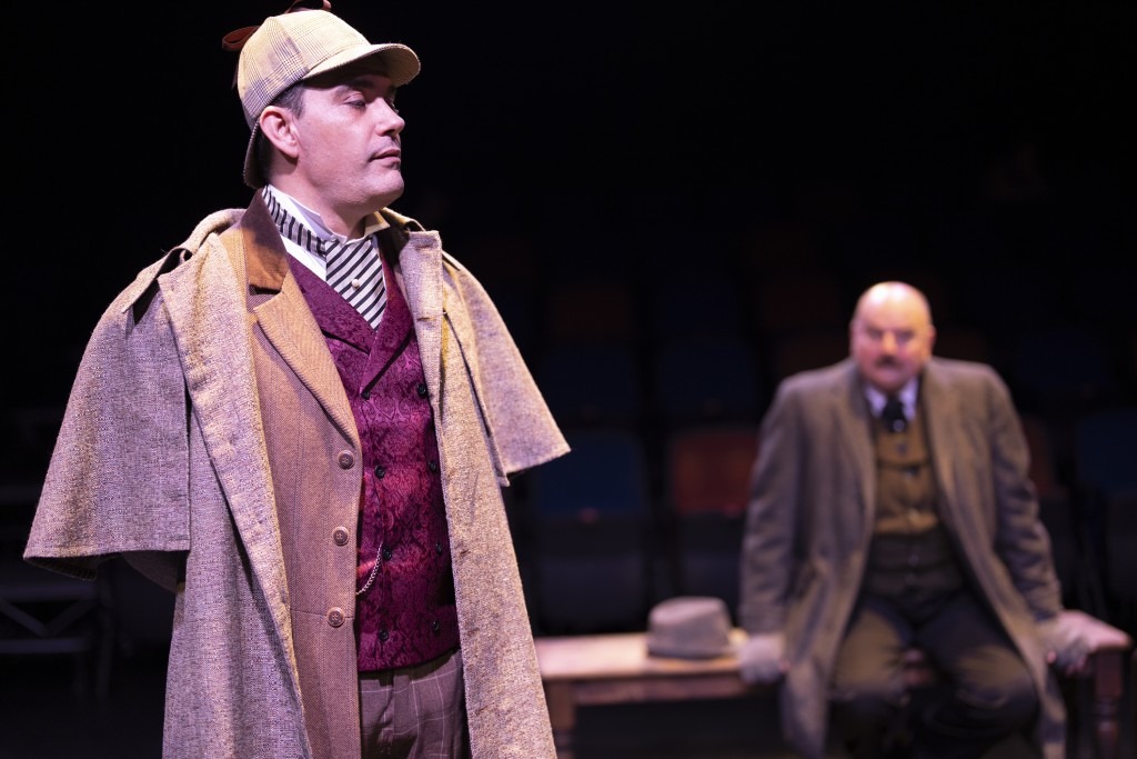 Hansen Scenic made chairs, two benches, and two doorway facades at either end of the stage, work as Holmes’s flat, Baskerville Manor, the Moors, the opera and even a stagecoach. This is a true example of less is more.