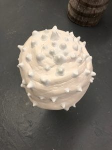 New piece is close to done! I’m really happy with how it turned out. It took SO much work to get that little tail made and to make sure that the sculpture stands without being wobbly. Plus, I’m really happy with how the pimples/barnacles turned out. I think I’ll leave it white, though. In some way, that’s stranger than making it my flesh color.