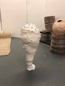 New piece is close to done! I’m really happy with how it turned out. It took SO much work to get that little tail made and to make sure that the sculpture stands without being wobbly. Plus, I’m really happy with how the pimples/barnacles turned out. I think I’ll leave it white, though. In some way, that’s stranger than making it my flesh color.