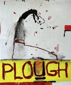 Perhaps it is impossible to write a word on a painting and not be tempted to infer meaning from it. These paintings use words as almost the entire visual experience but still function as line, shape, and color elements that build the dynamics of the image. Presenting them as if they are as sign is a way of playing with clarity of message. As I continue this direction in my work I am asking the question; can the written word be the main aspect and somehow still not be stuck in its own word-ness? And more, where is the flux point? What parameters are required for this phenomenon to occur, and when it does, (if it does) will viewers have unique individual interpretations, and experiences. Can the words produce a vagueness that is both intriguing and ever changing?