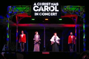 Presented by freeFall Theatre, A Christmas Carol: In Concert is performed in freeFall’s own parking lot. Patrons view the holiday concert in a drive-in style experience from the comfort of their own vehicles, while the show’s audio is broadcast through your car radio.
