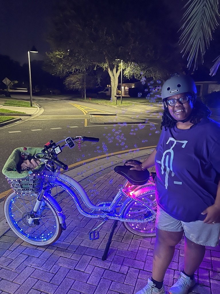 She says sometimes people come to get their bikes lit, and she never sees them again – including a couple who came from Venice Beach. Another woman comes from Sarasota to ride with the group. Worthington admits she’s humbled by that kind of engagement.