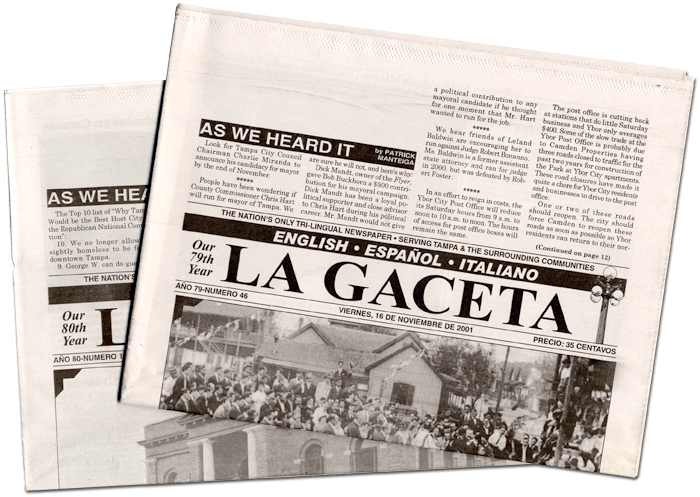La Gaceta, the only trilingual newspaper in the country, was founded in 1922 by Victoriano Manteiga who came to Florida from Cuba in 1913 to work for the Morgan Cigar Factory in Ybor City as a lector. As a paid reader, Manteiga read newspapers in Spanish and in English, as well as classic literature (such as Don Quixote and The Count of Monte Cristo) to the Spanish, Cuban and Italian workers rolling cigars in the factories of West Tampa and Ybor City.