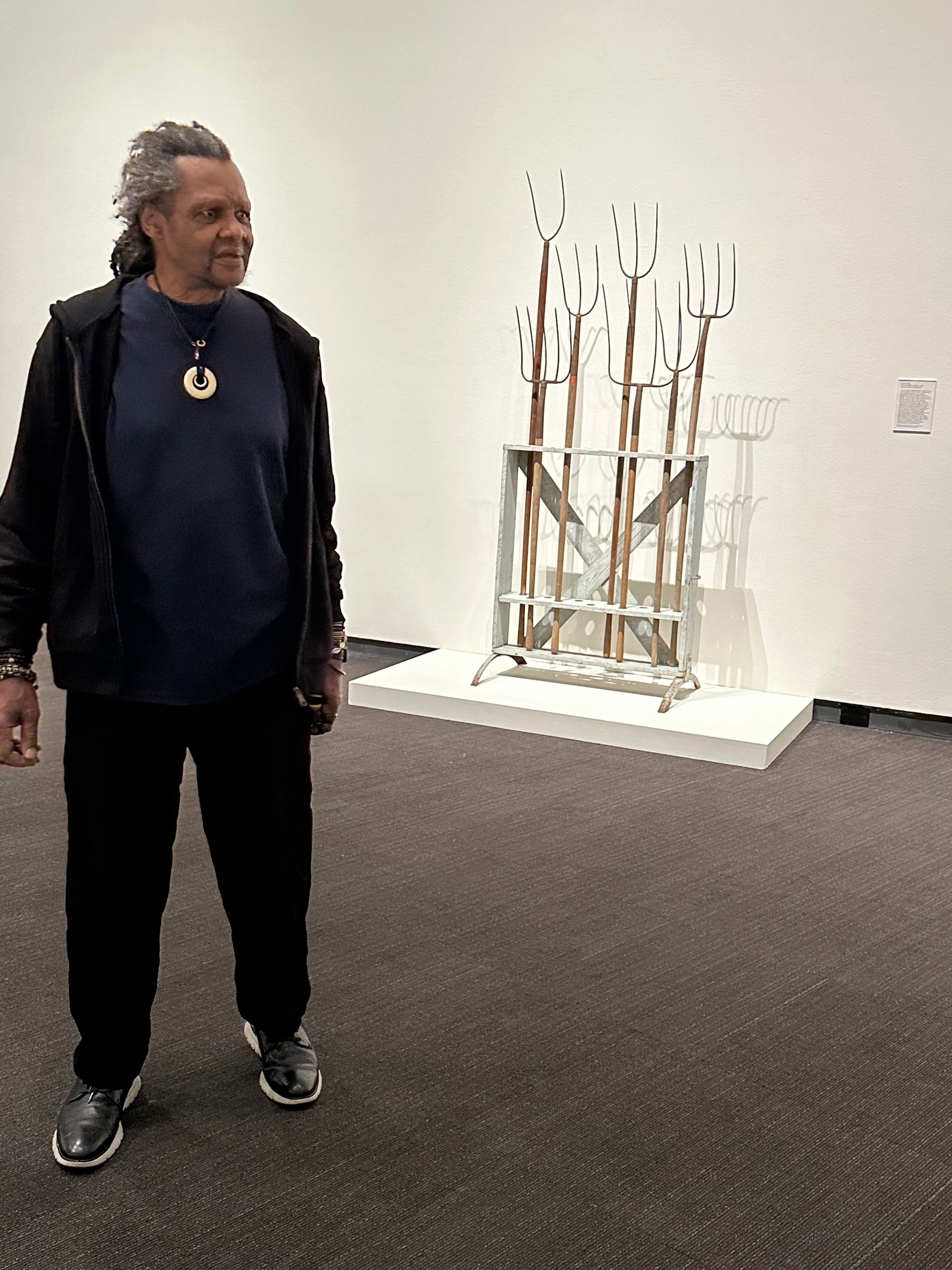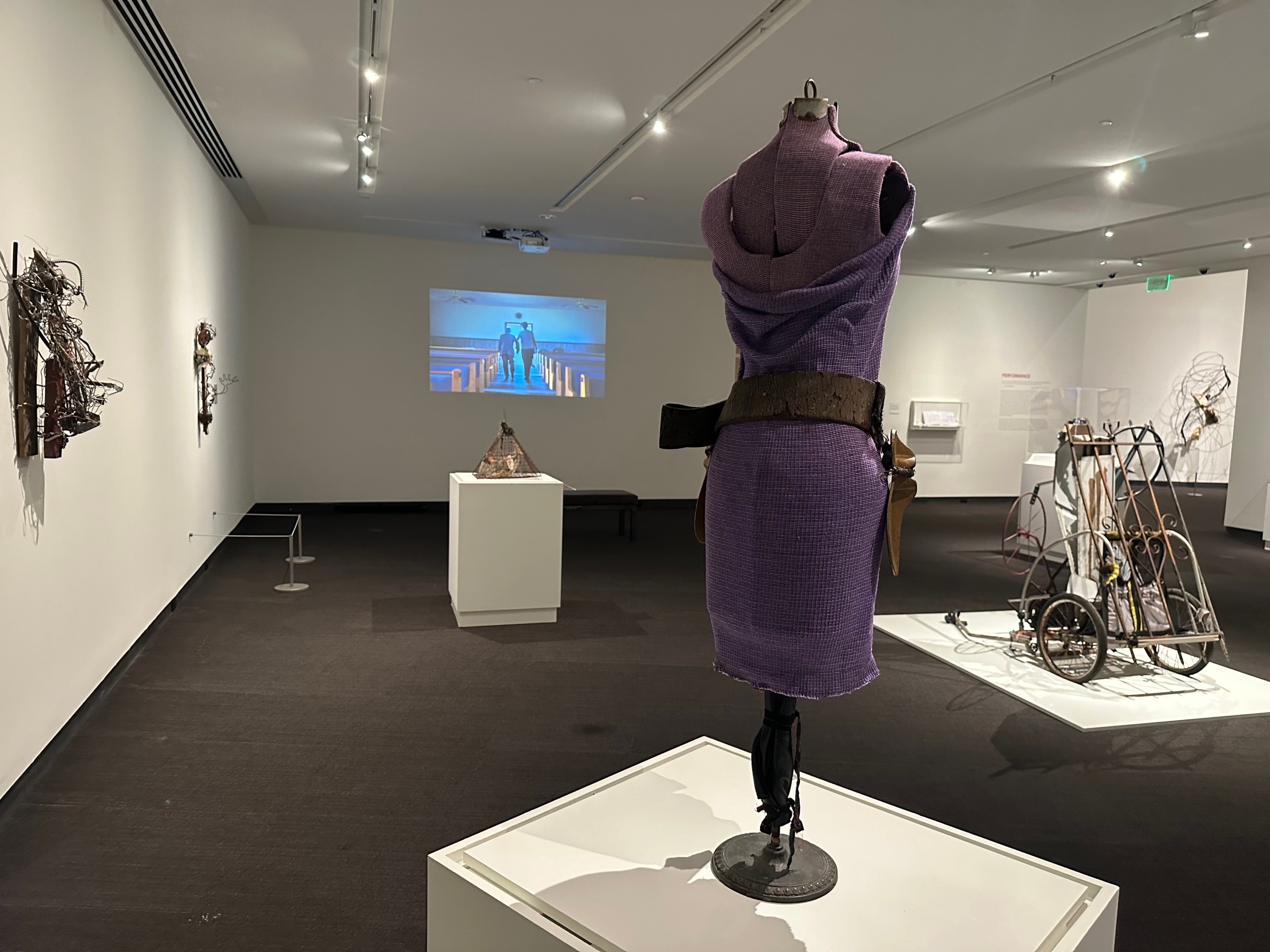 Explanation from the exhibition label – “Holley purchased this bicycle trailer from a man who was collecting scrap metal to earn money to feed his family. Holley saw his own artistic practice reflected in the man’s contraption. They both are accustomed to utilizing what they have, and what others have deemed unworthy, in an attempt to improve the lives of those around them.”