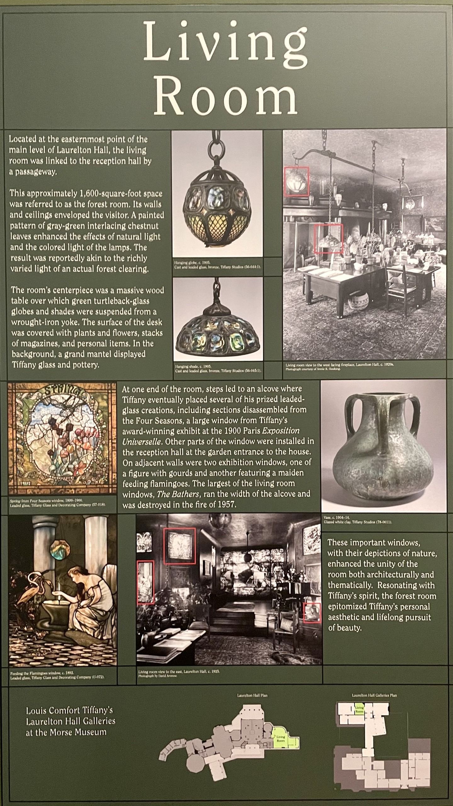 Next time I’ll continue in the year 1885, when Tiffany opened the Tiffany Glass Company in Corona Queens, New York, and continued to design interiors and expand his glass making techniques and objects which he used to adorn his homes and those of his wealthy clients.