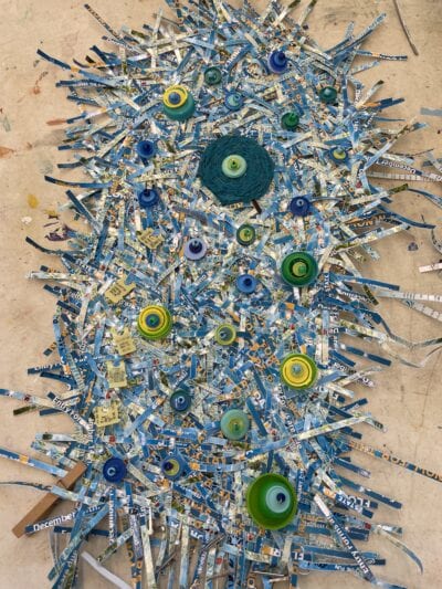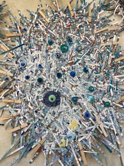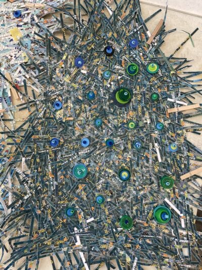 Thank you, Creative Pinellas for the chance to learn and grow and my super duper medium duty shredder!  Thanks, Gabriel for truly mentoring me. A thank you to my friends, near and far, who collected weird stuff that has turned into art.