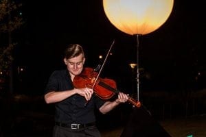 At 8:30 the sky was dark, the hill lit by glowing lamps. It was tricky to hear all the words outdoors with wind and noise and passers-by on the Riverwalk stopping to wonder what was going on, but all three performances were gorgeous and got a rousing response.