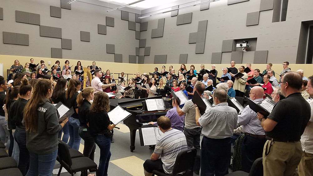 An earlier Master Chorale of Tampa Bay rehearsal at USF Choral Rehearsal Hall