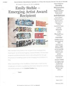 So, when I was awarded the Emerging Artist grant, I emailed NBO Executive Director Pam Morton and Administrative Manager Joan Ciolino the good news and promptly forgot about it. Someone at yesterday’s TBBG (Tampa Bay Basketmakers Guild) meeting said she was reading something on her computer when up popped an article about me and the grant.