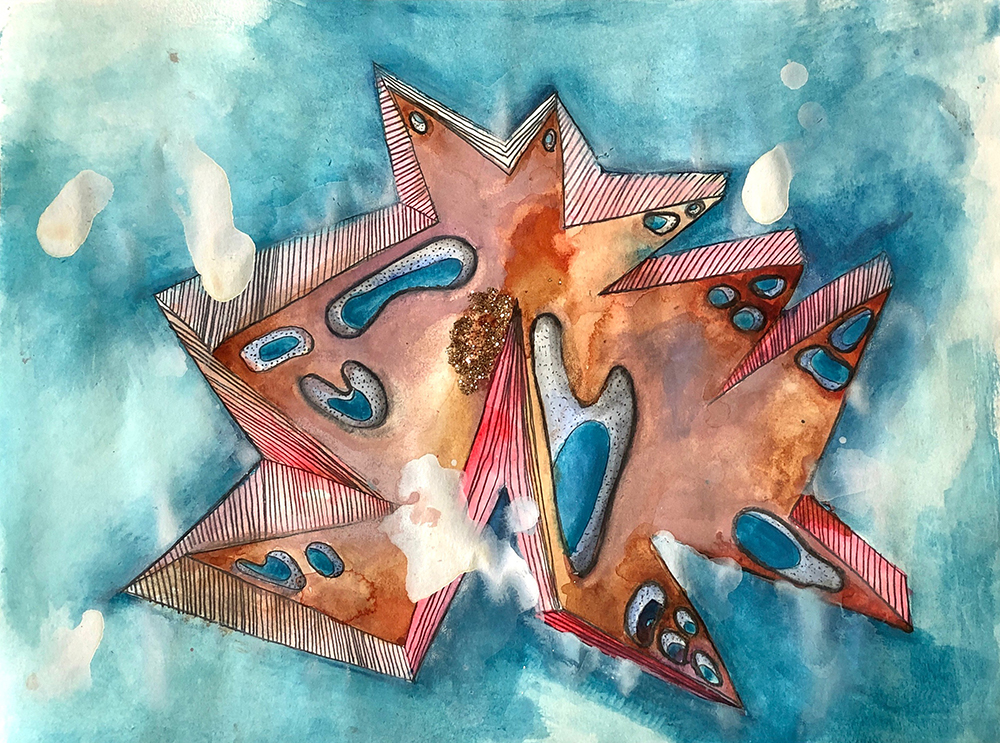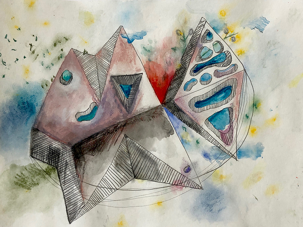 (Above) A mixed media sketch for a low relief, soft sculpture painting. Based on my hikes throughout Phoenix.