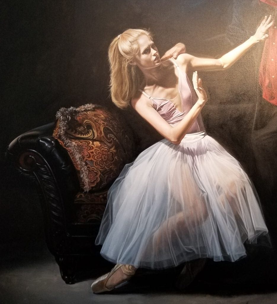 Florida artist Kevin Grass paints a ballerina in his Not #MeToo painting.