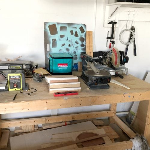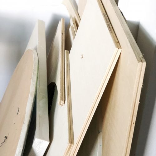 Up until the last year or so I never had my own “Studio” space completely designated just for art. Although its not the most glamorous (as my studio is in my garage) it gets the job done and is a large space with everything I need to get create and that I am thankful for. In one corner of my studio I have a wood working area where I make all of my panels for my collages and my installation pieces. This work bench includes anything from handed down saws and tools to brand new sanders and homemade jigs.