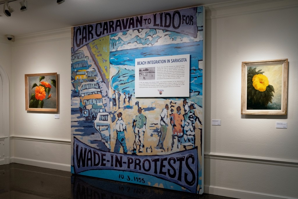 The exhibition also tells a parallel story of racial segregation and barriers to progress on the West Coast of Florida in Sarasota, a lens viewing local developments that is a slice of a larger picture of what was happening across the whole United States at that time.