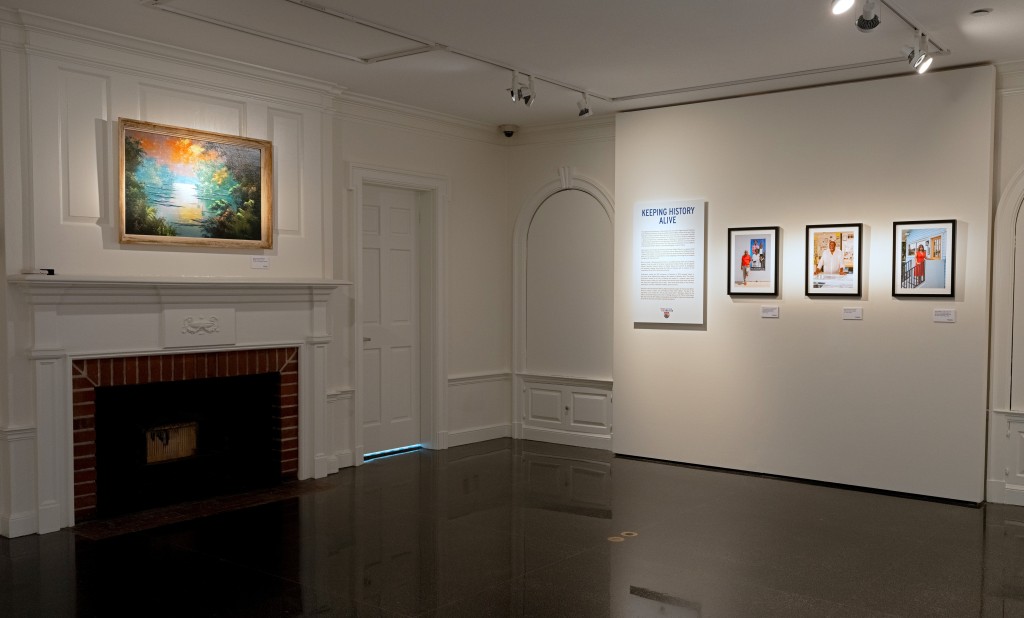 One painting was suspended in the middle of the room so viewers can examine both front and back to see how the Highwaymen’s paintings were made. Many of the frames were leftover materials like crown moldings from house construction.