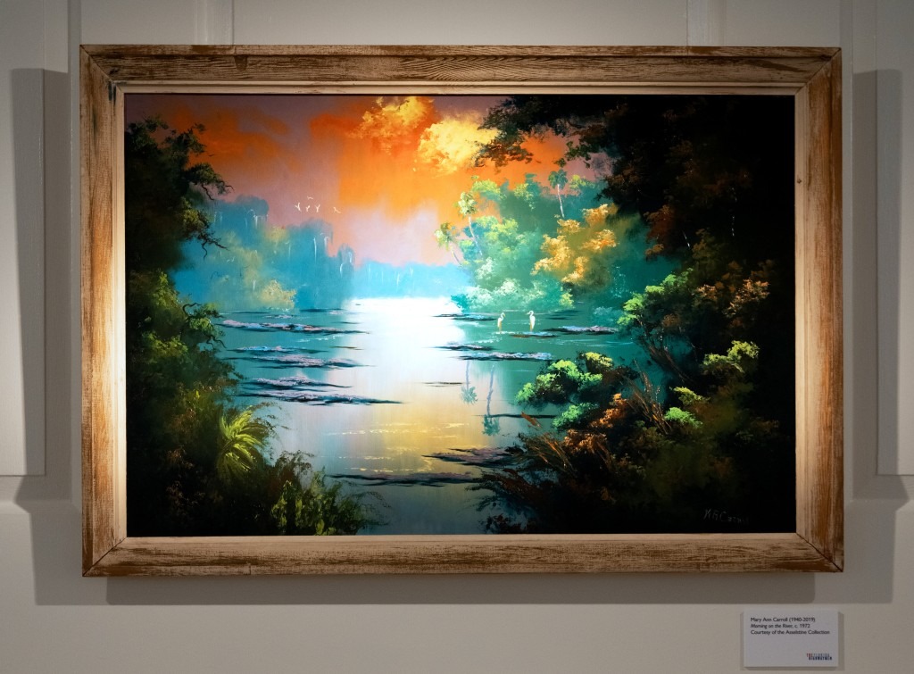 Known for her use of colors, Carroll’s painting in the exhibition, Morning on the River, illustrates both the dramatic sunrise colors and its serene reflections on the river.