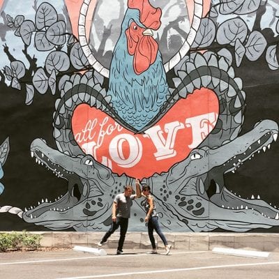 The couple has produced many of the murals that have popped up since 2015, including Oceanic Market’s brand spanking new signage that pops under the skyline. In 2017, they opened the Illsol Space to showcase other artists work but recently decided it was time to make a distinction between their personal work and others. So as of now, the Illsol space is renamed Mergeculture, leaving “Illsol” to be used for their personal business.